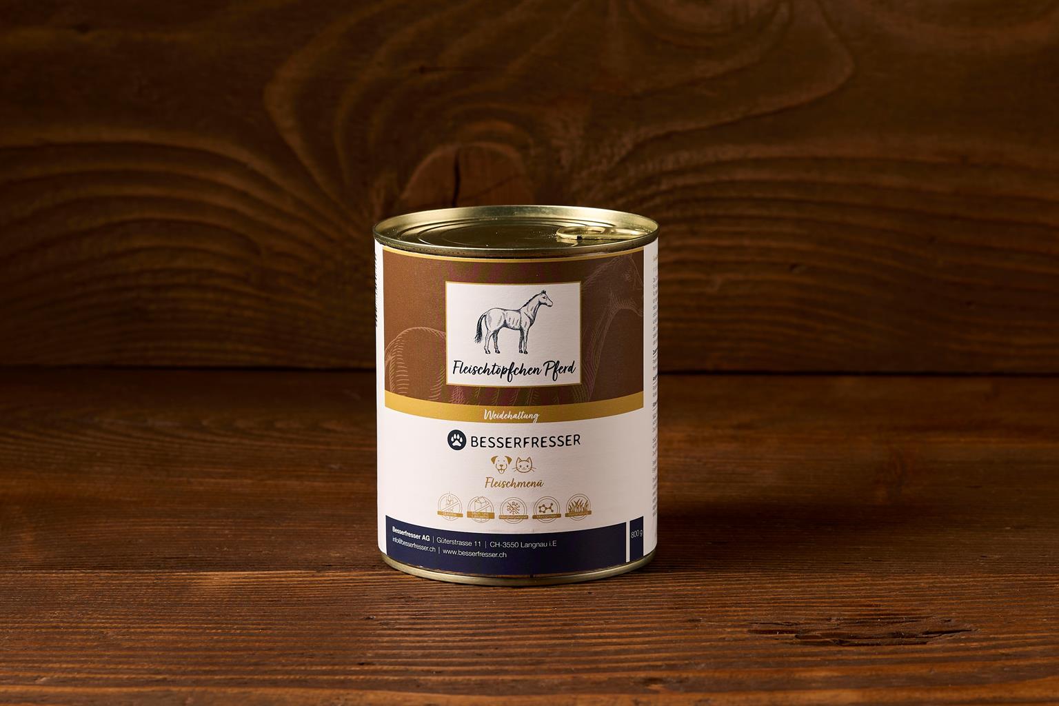 Für dieses Fleischtöpfchen verwenden wir ausschliesslich deutsches Pferdefleisch aus artgerechter Weidehaltung.